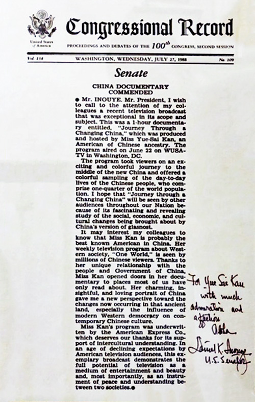 “Looking East “, ( 1972 ), the first weekly TV series introducing Asian cultures to American audience; the television series “One World”,( 1986 ), aired on China’s national television network CCTV, giving millions of Chinese the first glimpse of the outside world; in 1992, she successfully transformed herself from a TV personality to an entrepreneur by creating the Yue-Sai Cosmetics brand and inspired generations of Chinese women.